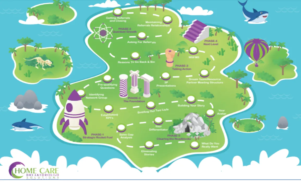 PHASE 1 - is the phase where we integrate the key strategies for helping you as you get ready for launch of your new sales system. This is like the rocket fuel that will propel you and your rocket ship as it takes off on a journey creating a massive flow of referrals.